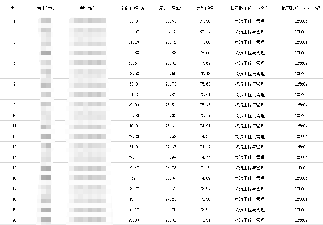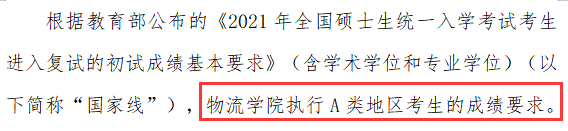 2021年復(fù)試分?jǐn)?shù)線:物流學(xué)院執(zhí)行A類地區(qū)考生的成績要求