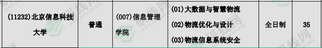 北京信息科技大學(xué)2021年物流工程與管理專業(yè)全日制擬錄取人數(shù)為35人。