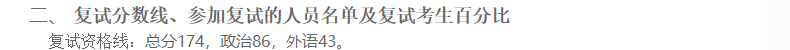 2021年復試分數線為174/86/43