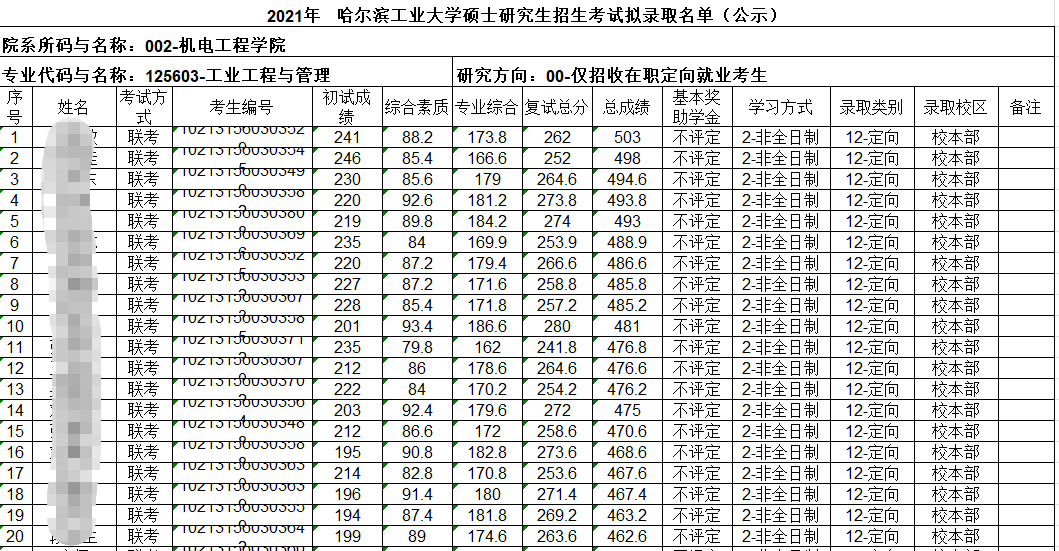 哈爾濱工業大學2021年非全日制擬錄取人數為71人。