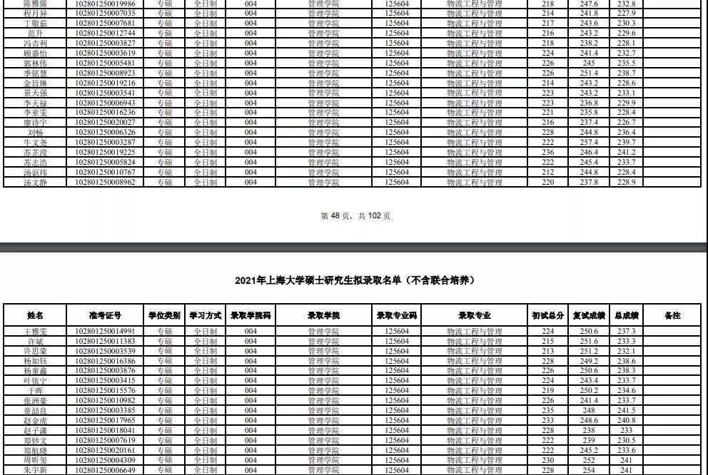 上海大學2021年物流工程與管理專業全日制擬錄取人數為34人(不含特殊計劃)。