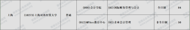 上海對外經貿大學2021年全日制會計專碩計劃招生84人(不含推免)非全日制會計專碩計劃招生50人