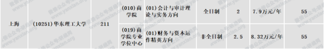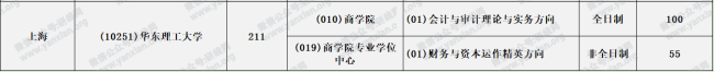 華東理工大學2021年會計專碩全日制計劃招生100人(不含推免)非全日制計劃招生55人
