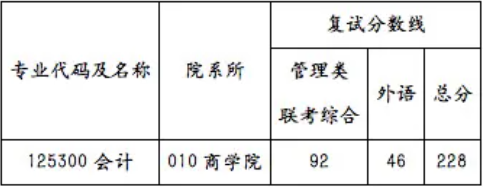 華東理工大學2021年商學院會計專碩復試分數線為: