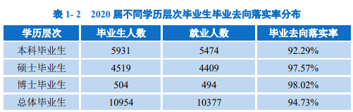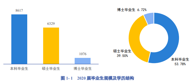 2020 屆畢業生共計10954人。其中碩士畢業生 4519人,占畢業生總人數的41.25%