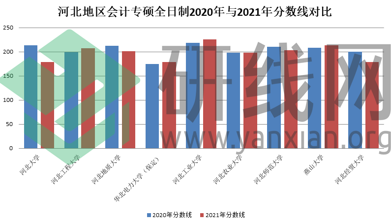 河北工業(yè)大學(xué)、華北電力大學(xué)(保定)和燕山大學(xué)2021年會(huì)計(jì)專碩全日制復(fù)試分?jǐn)?shù)線較2020年分?jǐn)?shù)線有所提高,分別為8分、4分和5分
