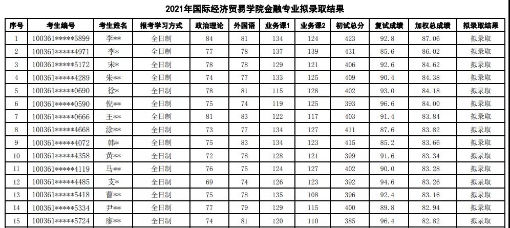 對外經(jīng)濟貿(mào)易大學(xué)2021年金融專碩復(fù)試基本分數(shù)線為372/72/49