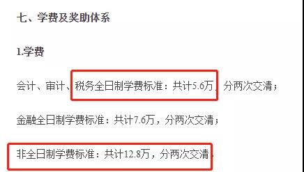 北京國(guó)家會(huì)計(jì)學(xué)院2021年稅務(wù)碩士全日制學(xué)費(fèi)為5.6萬(wàn)元/全程,非全日制學(xué)費(fèi)為12.8萬(wàn)元/全程。