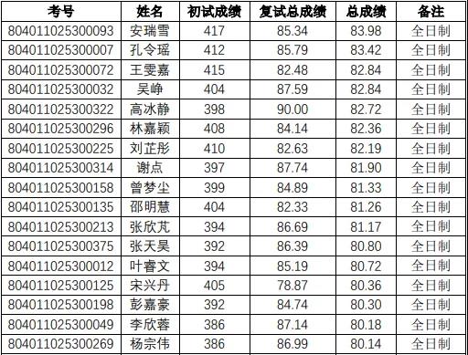 非全日制錄取最高分:403分