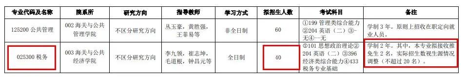 上海海關學院2022年稅務碩士全日制計劃招生40人,其中,擬接收推免生2名,實際招生數視生源情況調整(不超過20名)
