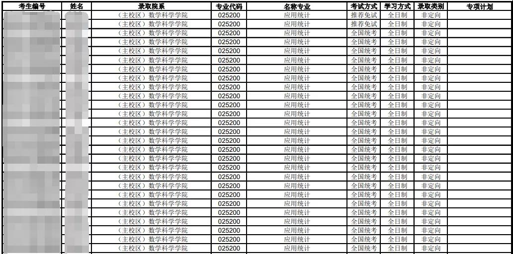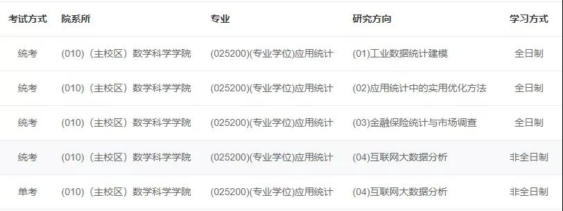 2022年應用統計碩士專業計劃招生全日制49人(不含推免),非全日制2人(不含推免)。