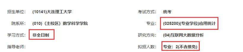 大連理工大學(盤錦校區)數學科學學院2021年應用統計碩士專業全日制擬錄取人數為10人(不包含推免)