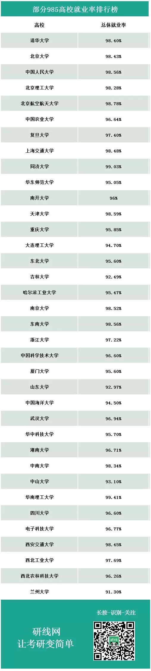 部分985高校就業(yè)率排行榜