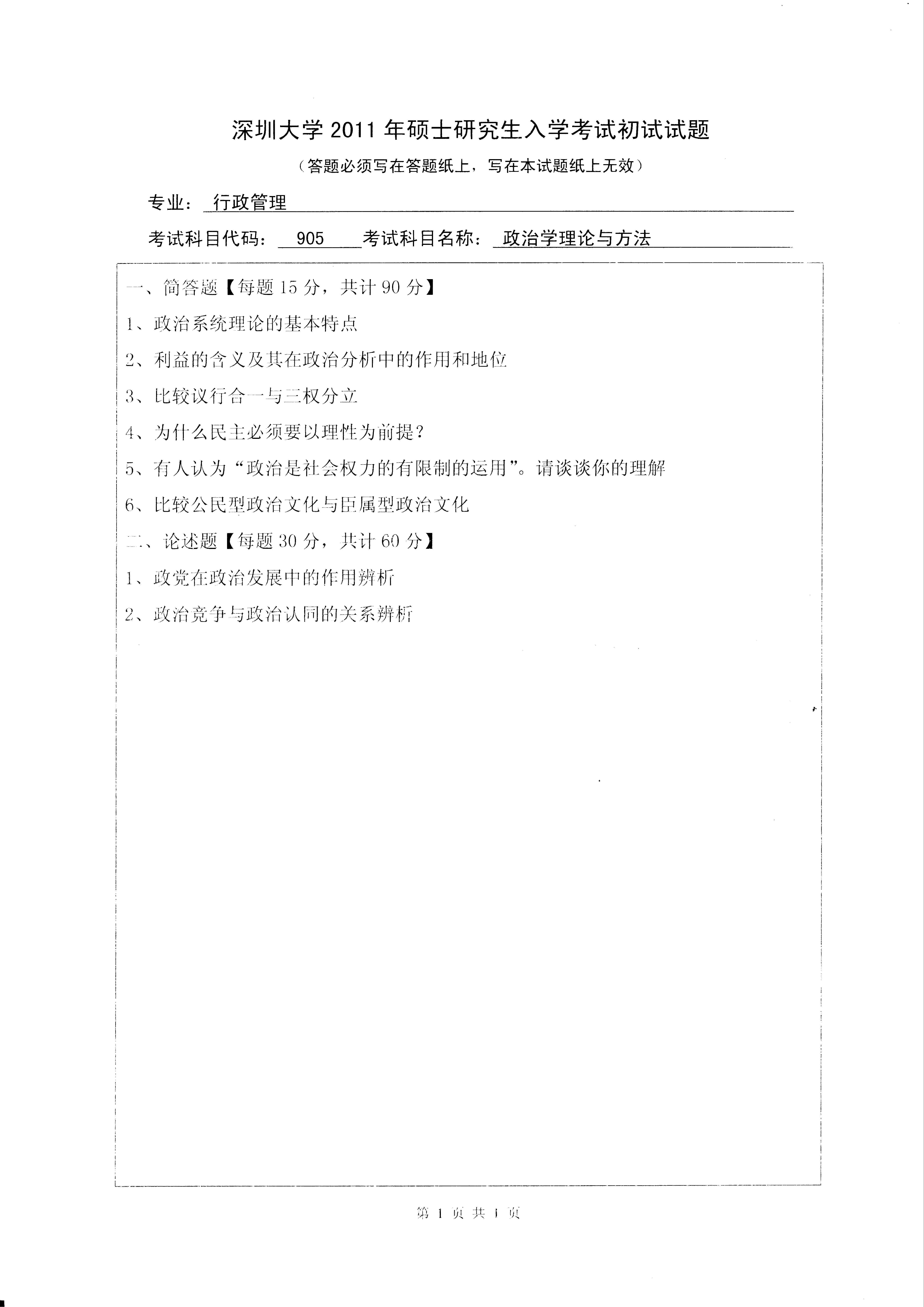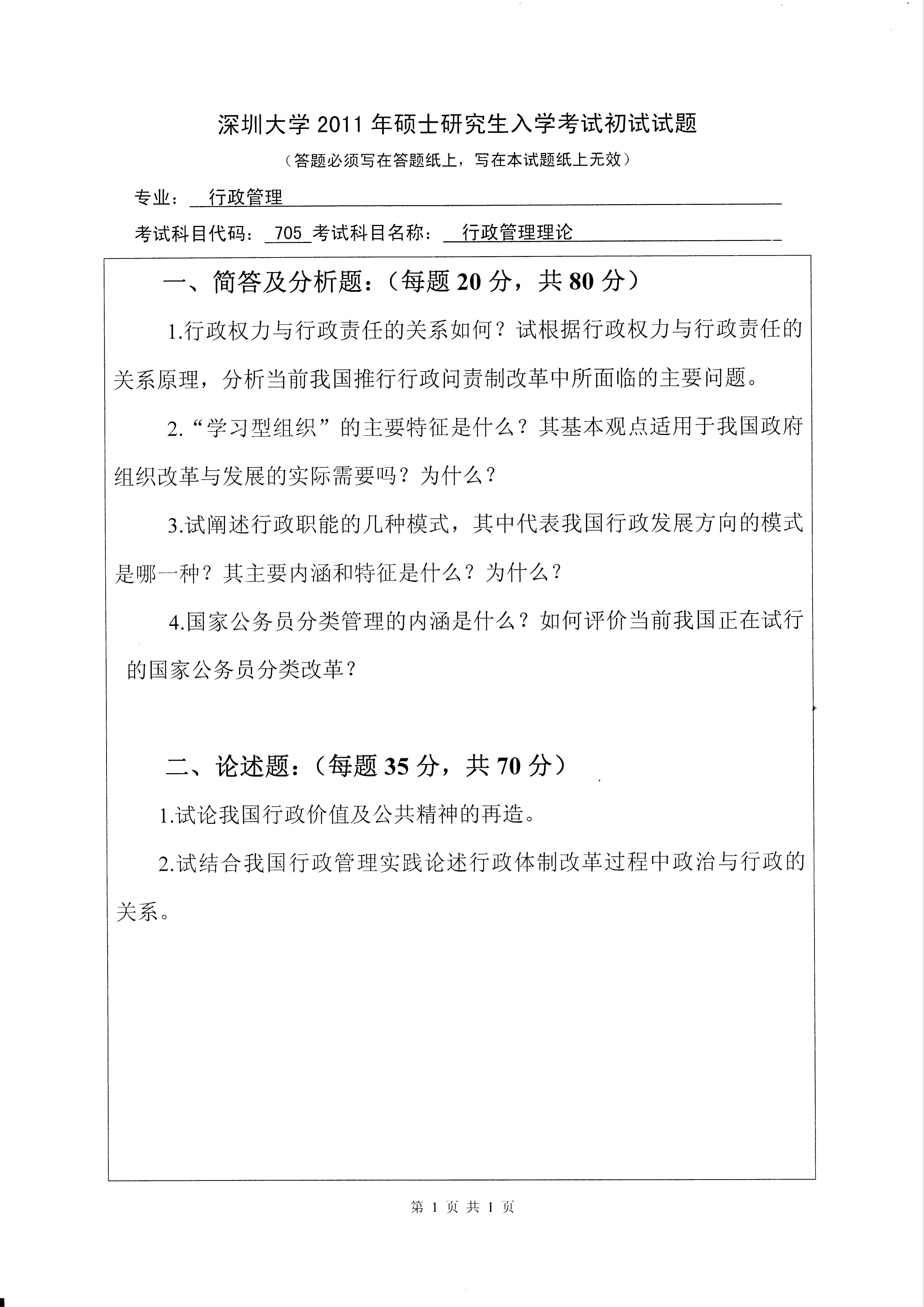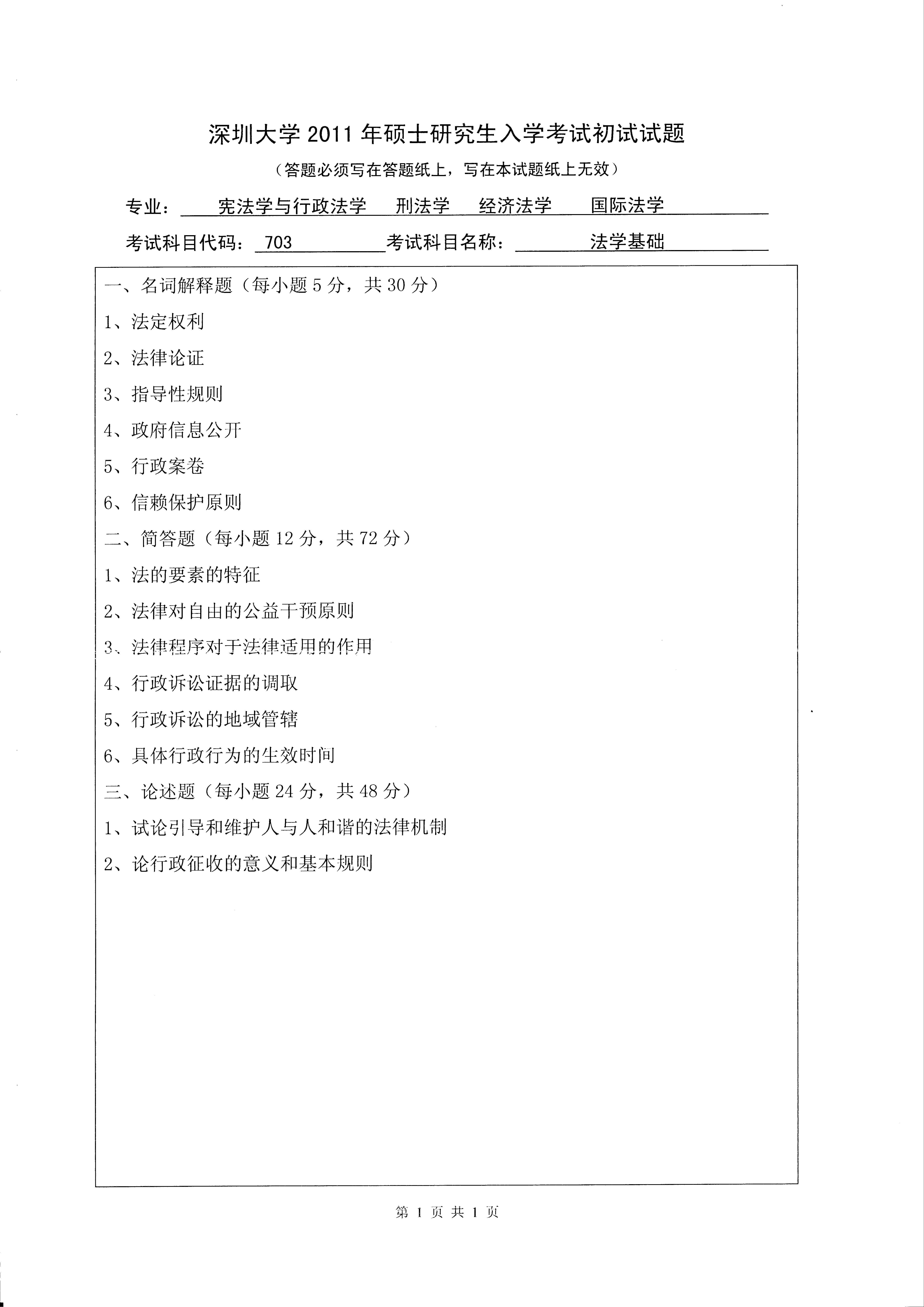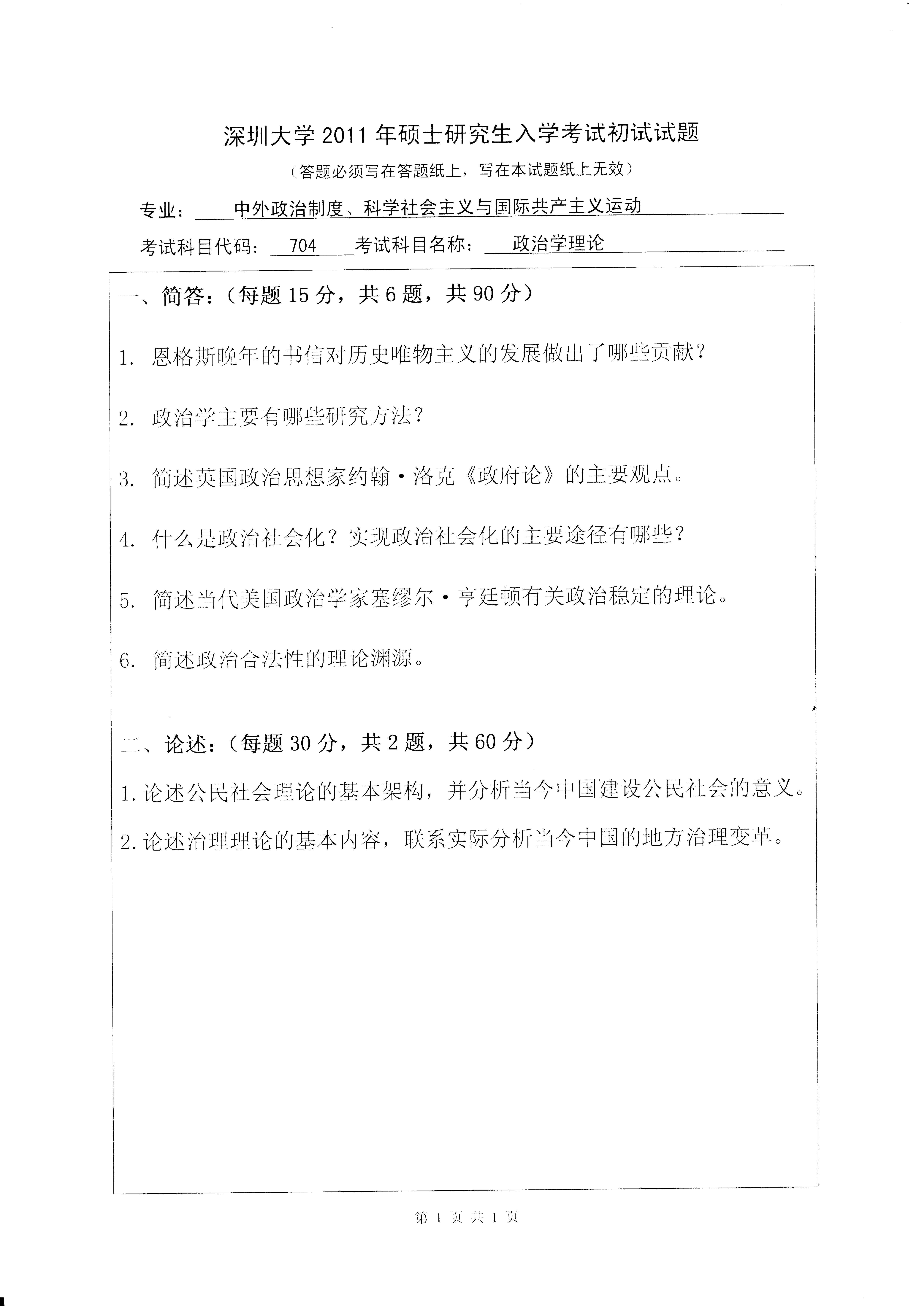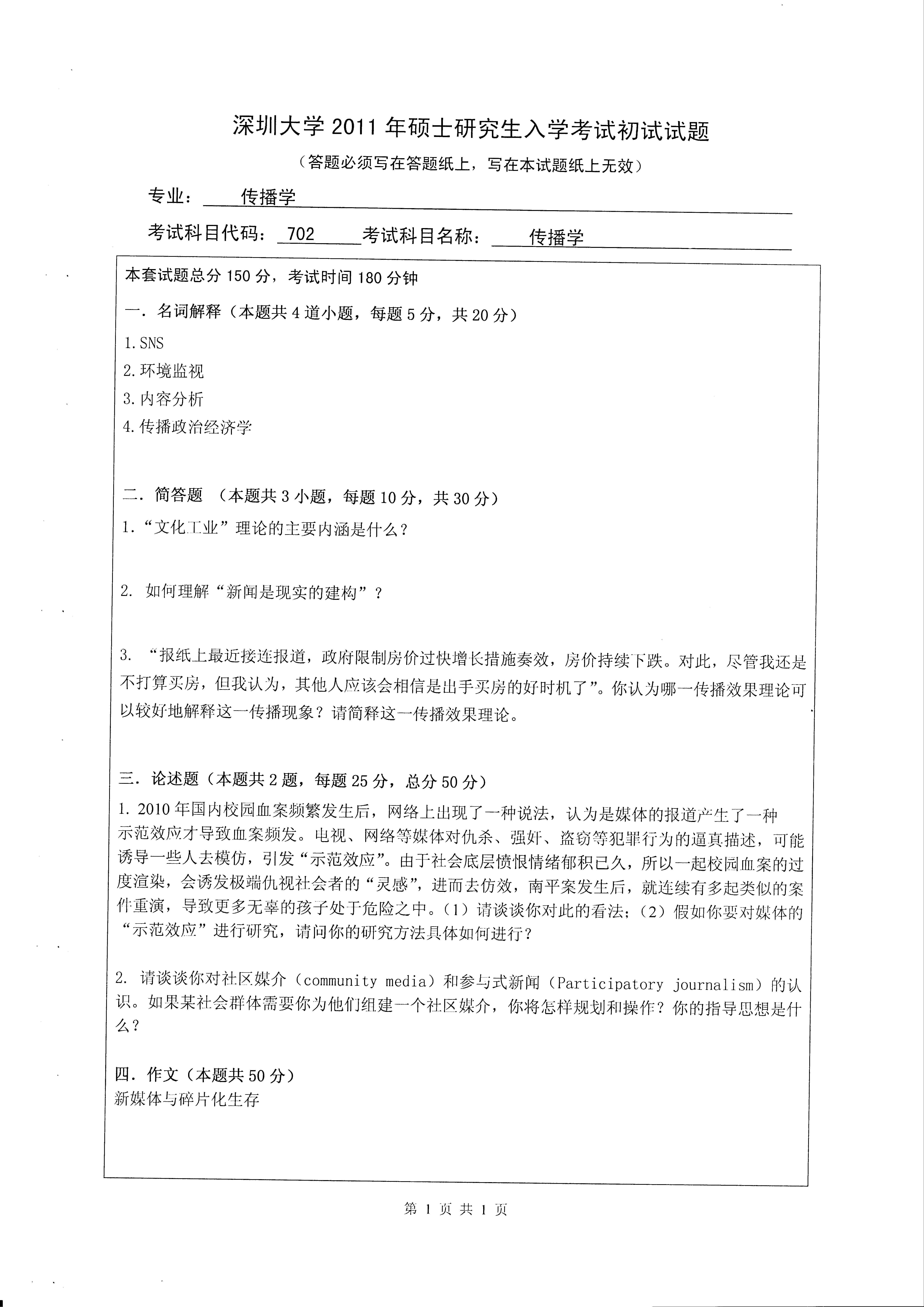 以上就是“考研真題:深圳大學(xué)2011年碩士研究生考試初試試題”的全部內(nèi)容!更多考研真題資料,請關(guān)注“考研專業(yè)課真題”欄目。祝您考研成功!
