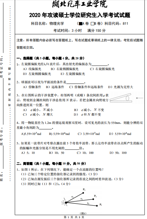 以上就是小編整理的“考研真題:湖北汽車工業(yè)學(xué)院811物理光學(xué)2020年攻讀碩士學(xué)位研究生招生入學(xué)考試試題”的全部內(nèi)容!更多真題資料請關(guān)注“考研專業(yè)課真題”欄目!祝考研成功!