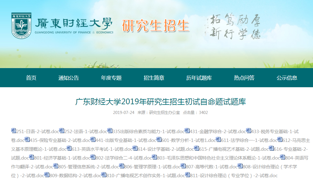 【點擊查看】廣東財經大學2019年研究生招生初試自命題試題庫