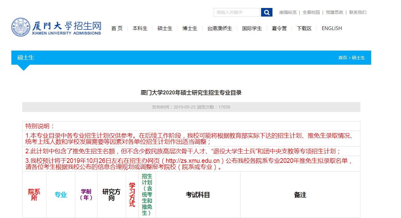 以上就是“廈門(mén)大學(xué)2020年碩士研究生招生專(zhuān)業(yè)目錄”的全部?jī)?nèi)容!祝你考研成功!
