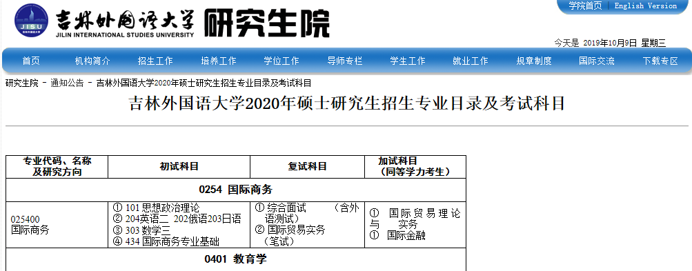 以上就是“吉林外國語大學2020年碩士研究生招生專業目錄及考試科目”的全部內容!祝你考研成功!