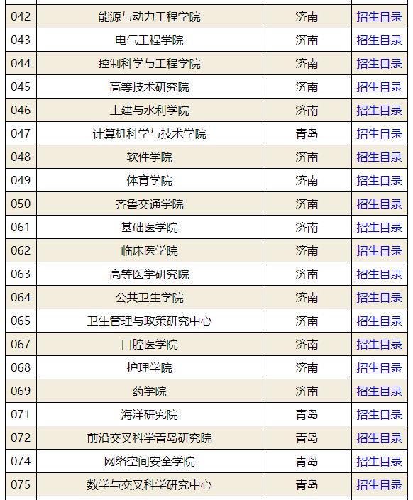 山東大學2021年碩士研究生招生專業目錄(預公布)