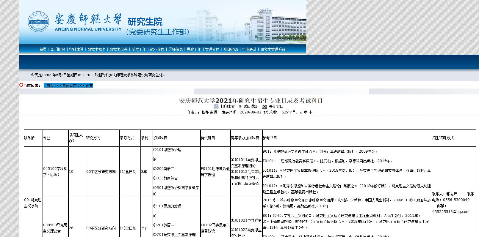 點擊查看:安慶師范大學2021年研究生招生專業目錄及考試科目
