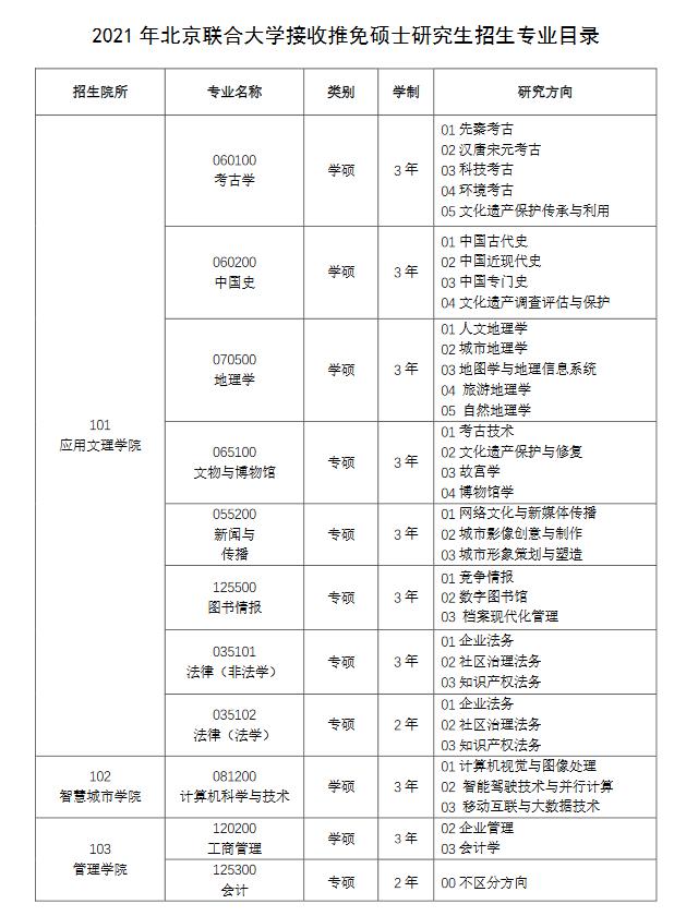 原文標題:北京聯合大學2021年接收推免碩士研究生招生專業目錄