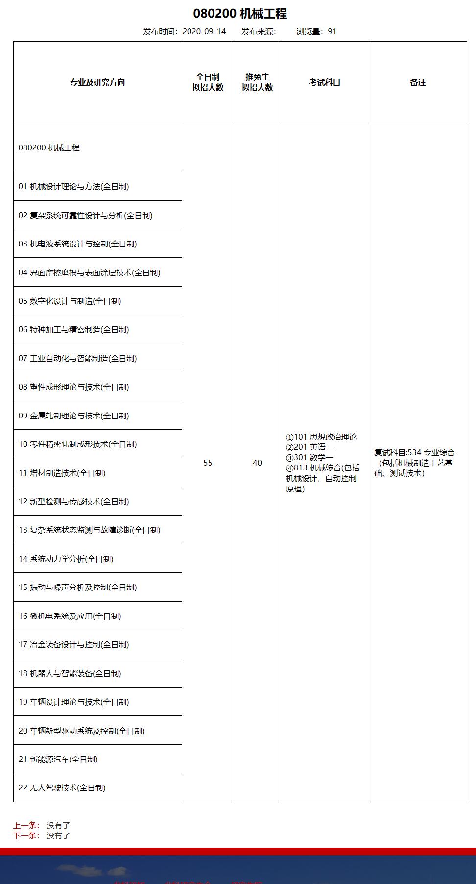 2021考研專業目錄:北京科技大學機械工程學院080200 機械工程2021年碩士研究生招生專業目錄