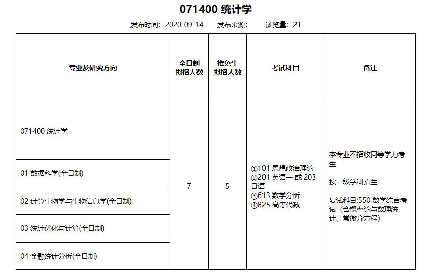 2021考研專業目錄:北京科技大學數理學院071400 統計學2021年碩士研究生招生專業目錄