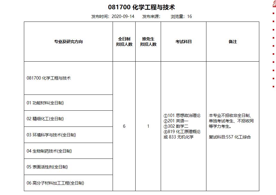 2021考研專業目錄:北京科技大學化學與生物工程學院081700 化學工程與技術2021年碩士研究生招生專業目錄