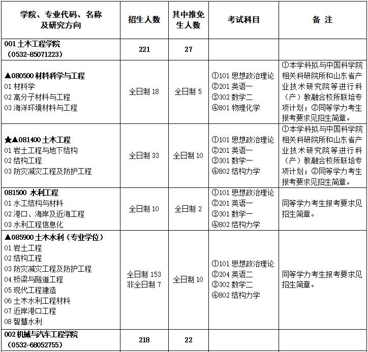 說(shuō)明:1、專(zhuān)業(yè)目錄中標(biāo)★學(xué)科為具有博士學(xué)位授予權(quán)的學(xué)科;2、專(zhuān)業(yè)目錄標(biāo)▲為該學(xué)科專(zhuān)業(yè)為省級(jí)重點(diǎn)學(xué)科或有省級(jí)及以上科研平臺(tái);3、實(shí)際招收推免生人數(shù)一般小于專(zhuān)業(yè)目錄所列推免生人數(shù);4、復(fù)試科目等相關(guān)信息屆時(shí)請(qǐng)關(guān)注研究生處網(wǎng)站。