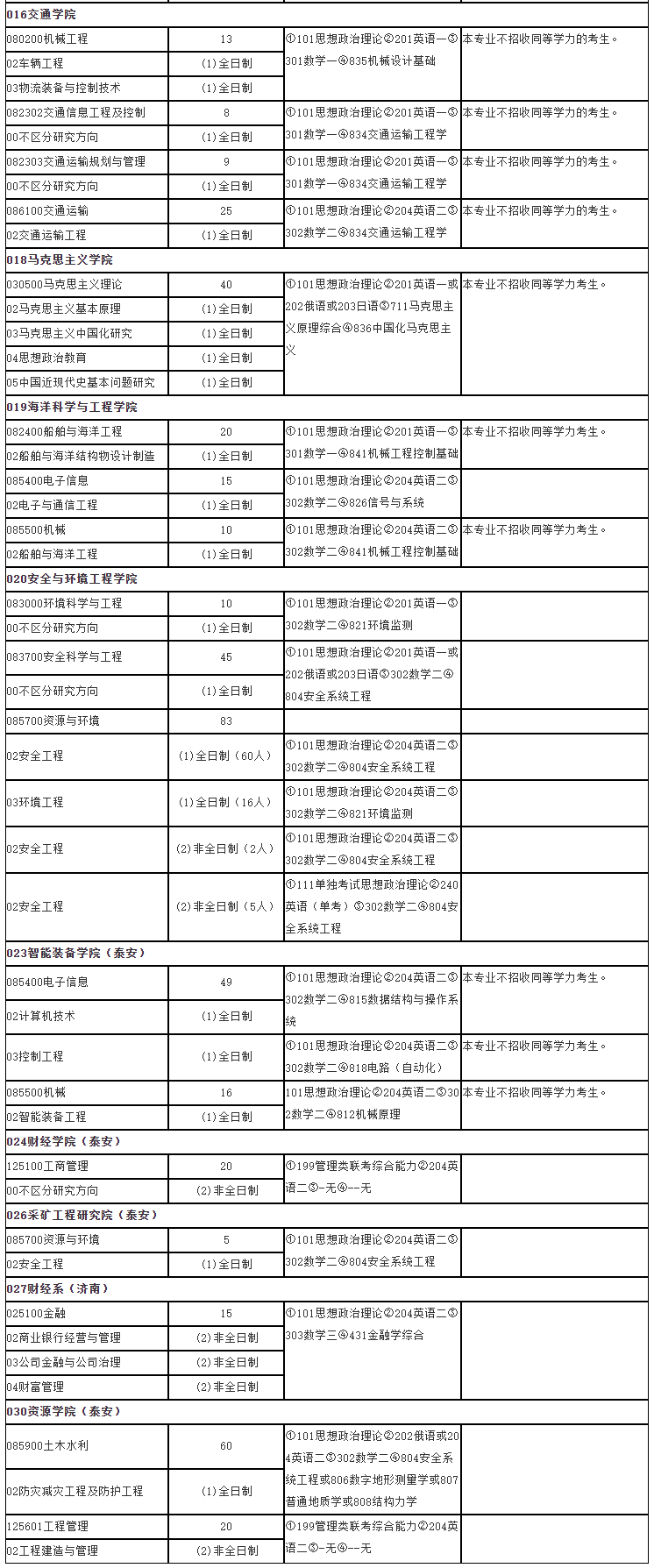 山東科技大學2021年碩士研究生招生專業目錄