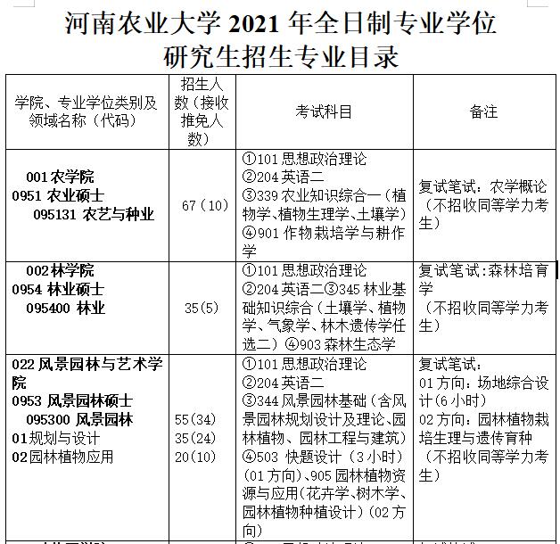 點擊查看:河南農業大學2021年全日制專業學位研究生招生目錄