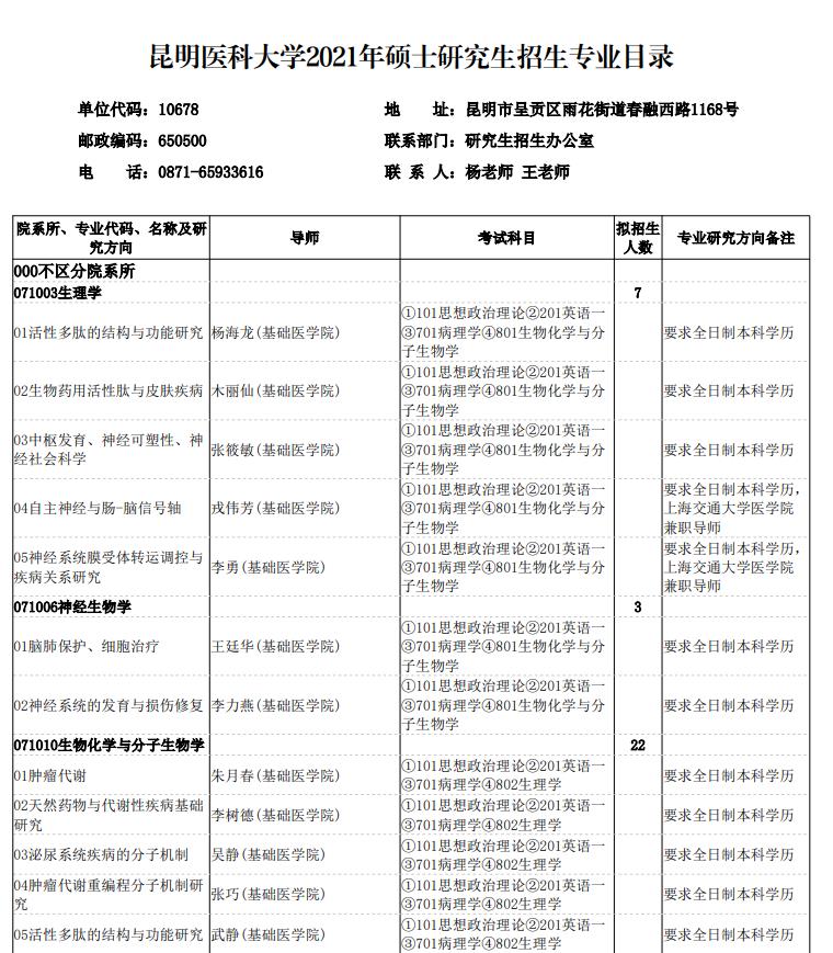 “2021考研專業目錄:昆明醫科大學2021年碩士研究生招生專業目錄”的相關內容!更多信息請官網查詢!祝您考研成功!