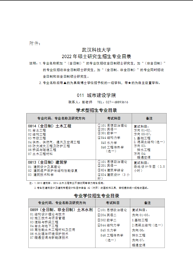以上就是“2022考研專業(yè)目錄:武漢科技大學城市建設學院2022年碩士研究生招生專業(yè)目錄”的全部內(nèi)容!祝您考研成功!更多考研動態(tài)、院校資訊請持續(xù)關(guān)注本網(wǎng)站!