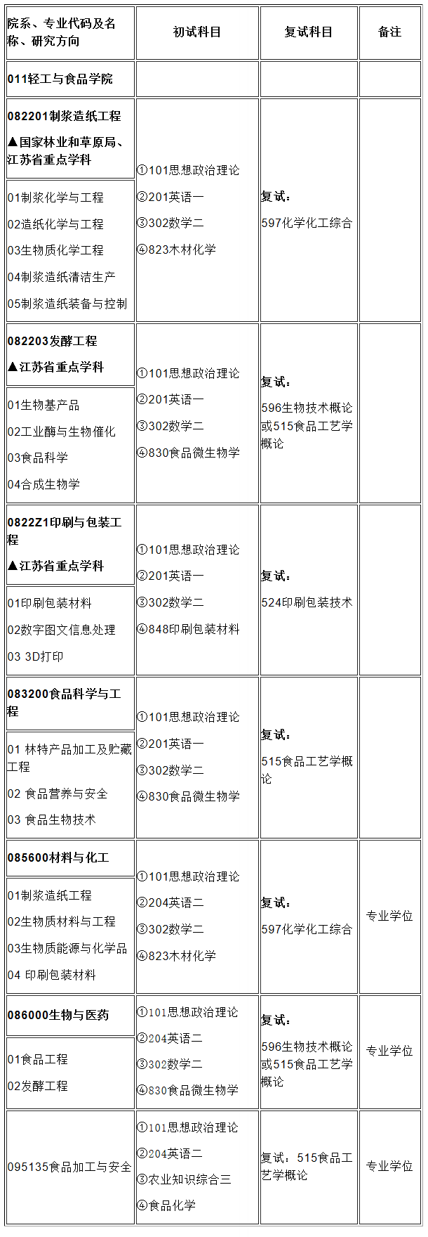 以上就是“2022考研科目調整:南京林業大學輕工與食品學院2022年碩士研究生入學考試部分專業初試科目調整”的全部內容!祝您考研成功!更多考研動態、院校資訊請持續關注本網站!