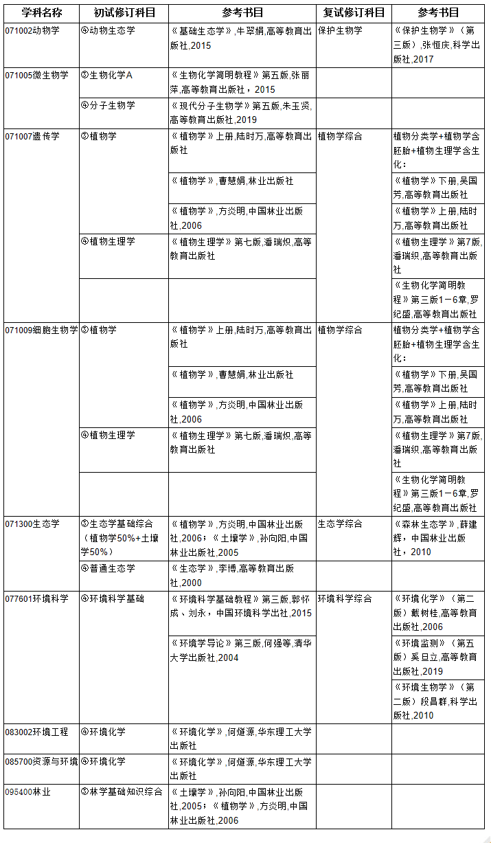 以上就是“2022考研科目調整:南京林業大學生物與環境學院2022年碩士研究生入學考試部分專業初試科目調整”的全部內容!祝您考研成功!更多考研動態、院校資訊請持續關注本網站!
