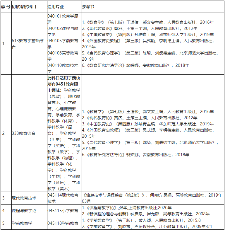 333教育綜合,2022年考試大綱和參考書目有調整,此科目適用于我校所有0451教育碩士領域。[學科教學(思政)、現代教育技術、小學教育、心理健康教育、學前教育、學科教學(體育)、學科教學(語文)、學科教學(歷史)、學科教學(英語)、學科教學(數學)、學科教學(物理)、學科教學(化學)、學科教學(生物)、學科教學(音樂)、學科教學(美術)]