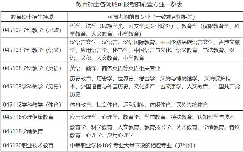 原文標題:關于報考2022年教育碩士前置專業要求的通知