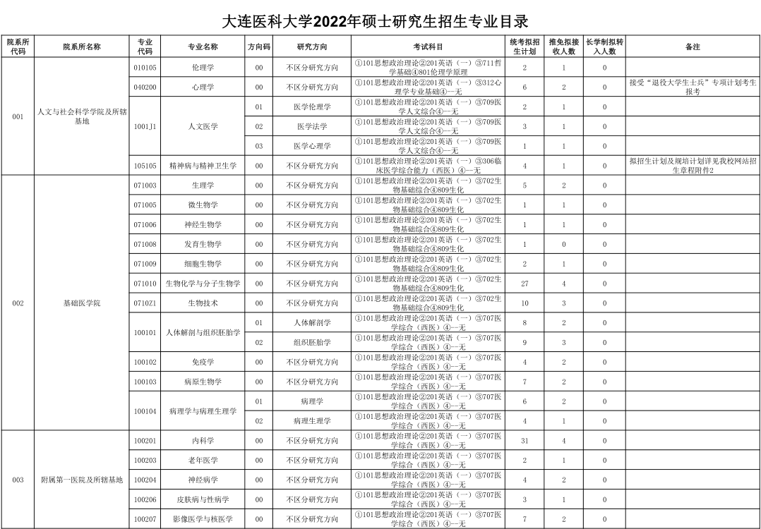 以上就是“2022考研專業目錄:大連醫科大學2022年碩士研究生招生專業目錄”的全部內容!祝您考研成功!更多相關信息請持續關注本網站!