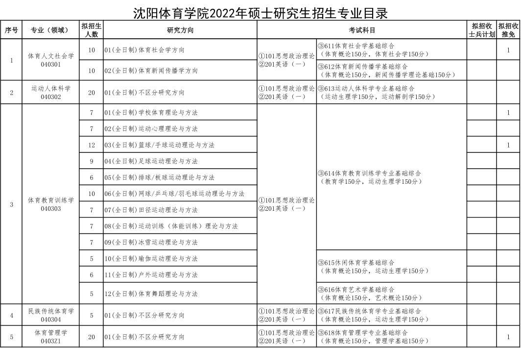 2022考研專業目錄:沈陽體育學院2022年碩士研究生招生專業目錄帶考試科目
