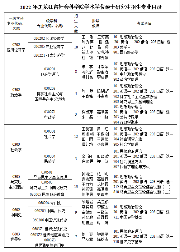 2022考研專業目錄:2022年黑龍江省社會科學院碩士研究生招生專業目錄