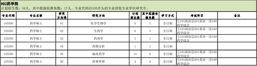 附件:北京大學(xué)醫(yī)學(xué)部892藥學(xué)院2023年碩士研究生招生專業(yè)目錄