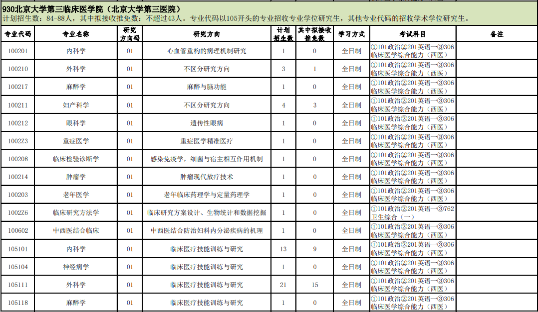 以上就是“2023考研專業目錄:北京大學醫學部930北京大學第三臨床醫學院(北京大學第三醫院)2023年碩士研究生招生專業目錄”的全部內容!祝您考研成功!更多相關信息請持續關注本網站!