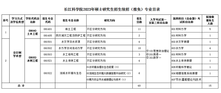 以上就是“2023考研專(zhuān)業(yè)目錄:長(zhǎng)江科學(xué)院2023年碩士研究生招生統(tǒng)招(推免)專(zhuān)業(yè)目錄”的全部?jī)?nèi)容!祝您考研成功!更多相關(guān)信息請(qǐng)持續(xù)關(guān)注本網(wǎng)站!