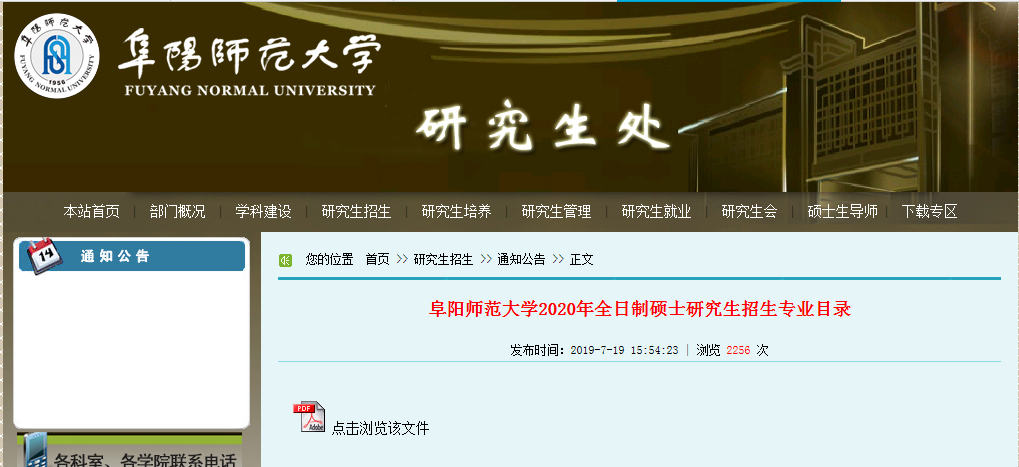 2020年碩士研究生招生專業目錄陸續已出,今天小編給大家整理的是“阜陽師范大學2020年全日制碩士研究生招生專業目錄”的相關內容,有報考意愿的小伙伴要注意下哦!