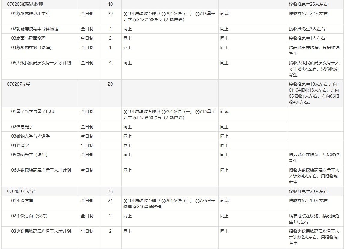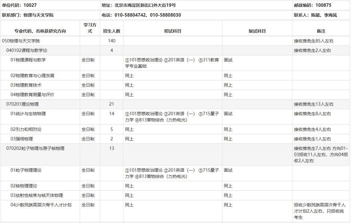 2025考研專業目錄:北京師范大學物理與天文學院2025年碩士研究生招生專業目錄